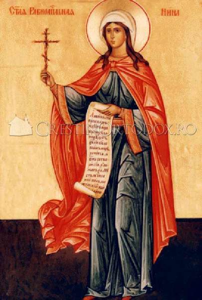 Cu Harul dat tie de Dumnezeu ne calauzesti, caci preacinstita ta pomenire, Sfanta Nina Cea intocmai cu Apostolii o praznuim si cu umilinta venim la chipul tau impodobit cu cinstita Cruce, din suflet rugandu-te: pazeste-ne pe noi in viata aceasta in credinta dreapta, in evlavie si curatie, ca la adormirea noastra sa ne invrednicim a-l canta Domnului asa: Aliluia.
