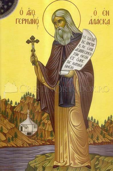 Sfantul Gherman de Alaska (1756-1837) a fost un calugar crescut in duhul isihast al Sfantului Paisie de la Neamt, ce a ajuns misionar in insulele aleutine, fiind primul sfant ortodox ce a trait pe pamant american. La canonizarea sa a contribuit mai ales Parintele Serafim Rose si fratia sa, ce poarta acum chiar numele sfantului. Sfantul Gherman este cunoscut si prin numeroasele minuni si tamaduiri savarsite dupa adormirea sa. Sfintele sale moaste se afla in Alaska pe insula Kodiak, iar o particica la manastirea Ormilia din Grecia.