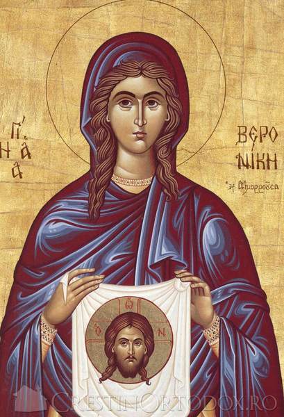 Avand inaintea noastra Chipul lui Hristos, al Preasfintei Nascatoare de Dumnezeu si al tuturor Sfintilor, ne bucuram, noi pacatosii, de randuiala lui Dumnezeu si pe Sfanta Veronica, cea care a indraznit intai a se apropia de Dumnezeire, o laudam, zicand:
