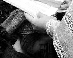 Harul Domnului si Mantuitorului nostru Iisus Hristos, cel dat Sfintilor Sai Ucenici si Apostoli, - zicand: Pe bolnavi mainile veti pune si bine le va fi, si printr-insii este dat si noua nevrednicilor slujitorilor Sai, acest har, prin mine smeritul si nevrednicul preot, sa te tamaduiasca pe tine, fiule si fratele nostru cel duhovnicesc de toata boala si neputinta sufleteasca si trupeasca ce te-a cuprins, si sa te daruiasca Bisericii Sale intreg, cinstit, sanatos, indelungat in zile, bine umbland si facand poruncile lui Dumnezeu, acum si pururea si in vecii vecilor. Amin!