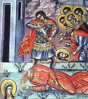 Inainte de a ti se taia cinstitul cap, te-ai rugat vreme de un ceas, ridicandu-ti ochii spre cer si binecuvantand pe Dumnezeu. Si de la Dansul ai primit innoita adeverire a primirii tale la cerestile lacasuri, intru bucuria Domnului tau.