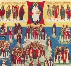 Dupa obisnuitul inceput se zice Condac 1: Pe sfintii care au stralucit in pamanturile Apusului in vechime si aceste parti le-au luminat prin nevointele si luptele lor, pe acestia toti sa-i laudam si noi acum dupa cuviinta. Si sa le cantam lor ca unora ce pururea se roaga inaintea lui Dumnezeu pentru noi, zicandu-le asa: Bucurati-va, sfintilor toti, care in pamanturile Apusului ati marturisit dreapta credinta! Icos 1: Minunat s-a slavit intru voi, sfintilor Apusului, numele cel intru totul sfant al Mantuitorului nostru Hristos. Ca privind viata si faptele voastre cele spre mantuire, popoarele Apusului s-au invatat sa se inchine Dumnezeului celui Adevarat si sa va cinsteasca pe voi cu bucurie, zicand: Bucurati-va, apostoli si mucenici, cuviosi si episcopi, ca voi sunteti lauda si bucuria intregului Apus; Bucurati-va, ca voi inaintea tuturor sunteti roada cea mai de pret a acestor locuri; Bucurati-va, ca sangele vostru sfant a spalat toata intinaciunea paganeasca; Bucurati-va, ca prin invataturi pline de putere poporul din nestiinta l-ati scos; Bucurati-va, ca in intunericul acelor vremuri ati stralucit ca niste faruri prealuminate; Bucurati-va, ca v-ati aratat inaintea lumii intregi povatuitori nemincinosi pe calea mantuirii; Bucurati-va, ca prin aceasta sunteti parinti in Hristos pentru toate neamurile Apusului; Bucurati-va, ca pana acum va rugati neincetat pentru ele in ceruri; Bucurati-va, ca voi mai ales sunteti nadejdea cea tare a acestor locuri; Bucurati-va, ca intru voi se lauda toti credinciosii apuseni; Bucurati-va, ca pe acestia ii invatati sa aduca lui Dumnezeu dreapta cinstire; Bucurati-va, ca intreg Apusul il chemati la pocainta si intoarcere la Dumnezeu; Bucurati-va, sfintilor toti, care in pamanturile Apusului ati marturisit dreapta credinta! Condacul al 2-lea: Si pamanturile Apusului s-au invrednicit de minunatii Apostoli ai lui Dumnezeu, care cu ravna nestinsa au propovaduit peste tot vestea cea buna a mantuirii neamului nostru. Iar prin acestia popoarele Apusului s-au nascut pentru intaia data la Hristos si au inceput sa-I cante Lui ca Unui Dumnezeu: Aliluia! Icosul al 2-lea: Luminatori ai Apusului s-au facut prin truda lor cea neobosita Sfintii Apostoli. Ca ei puterea cea intunecata a vrajmasului au socotit-o intru nimic, si cu neinfricare au raspandit lumina lui Hristos pretutindeni. Pentru aceasta au si marturisit inca pana la sange adevarul si s-au invrednicit sa auda din gura tuturor cantari de lauda ca acestea: Bucurati-va, Apostoli ai lui Hristos, care v-ati nevoit sa duceti vestea cea buna in pamanturile Apusului; Bucurati-va, ca voi mai intai sunteti parintii si ocrotitorii acestor locuri; Bucurati-va, asadar, Sfintilor Petru si Pavel, mai-marii Apostolilor, ca ati intemeiat cea dintai Biserica in Apus; Bucurati-va, ca prin voi Roma pagana a inceput a aduce jertfa curata Adevaratului Dumnezeu; Bucurati-va, ca nu v-ati spaimantat de toata infricosarea si prigoana necredinciosilor; Bucurati-va, ca pana la urma credinta voastra in Hristos ati pecetluit-o cu insusi sangele vostru; Bucura-te, apoi, Sfinte Iacove, Apostole, fiule al lui Zevedeu, care ai luminat pamanturile Spaniei; Bucura-te, ca moastele tale odihnesc pana azi in acele parti, aducand tuturor mangaieri; Bucura-te si tu, Sfinte Apostole Simon Zelotul, care in Britania ai dus credinta in Hristos cel inviat; Bucura-te, ca asemenea celorlalti Apostoli si tu ai primit moarte pentru viata cea vesnica; Bucura-te, Sfinte Aristobul, care Sfantului Simon i-ai urmat in propovaduire; Bucura-te, ca ai ajuns cel dintai episcop al Britaniei si mucenic al lui Hristos; Bucurati-va, sfintilor toti, care in pamanturile Apusului ati marturisit dreapta credinta! Condacul al 3-lea: Lasat-au Apostolii Domnului, in locurile pe care le-au luminat, ucenici si urmasi vrednici, care cu nimic nu au fost mai prejos parintilor lor, ci intru totul le-au urmat in ravna si-n lucrare. Ca ei prin pilda vietii lor popoarele cele pagane le-au ridicat de la slujirea idoleasca si le-au adus la inchinarea Singurului Dumnezeu, invatandu-le sa-I cante Acestuia neincetat: Aliluia! Icosul al 3-lea: Sa cantam si noi intr-un glas tuturor celor ce s-au invrednicit a fi urmatori Sfintilor Apostoli, care lucrarea acelora au dus-o mai departe si pamantul Apusului l-au sfintit prin cuvintele si sangele lor; si sa le zicem lor, ca unora ce pana azi se roaga pentru noi inaintea tronului lui Dumnezeu, unele ca acestea: Bucurati-va, toti cei ce v-ati aratat minunati ucenici ai ucenicilor lui Hristos; Bucurati-va, ca alaturi de parintii vostri v-ati nevoit cu ravna pentru luminarea Apusului; Bucura-te, asadar, intre ei toti, Sfinte Clement, ca mai-marele Apostolilor te-a sfintit episcop al Romei; Bucura-te, ca turma cea incredintata tie ai pastorit-o cu deplina intelepciune si vrednicie; Bucura-te, apoi, Sfinte Ignatie, episcop de Antiohia, ca si tu ai primit hirotonia din mainile Sfantului Petru; Bucura-te, purtatorule de Dumnezeu, ca scrierile tale ne sunt de mare mangaiere pana in ziua de astazi; Bucura-te, ca mucenicia ta cea slavita este pentru toti pilda de barbatie si vitejie in fata mortii; Bucura-te si tu, Sfinte Iustin, filosofule, ca prin cartile tale ai intaratat mania vrajmasilor lui Hristos; Bucura-te, ca neindurand intelepciunea ta cea dumnezeiasca, acestia te-au mucenicit in arenele Romei; Bucura-te, apoi, Sfinte Irineu, episcop de Lyon, ca din Asia Mica ai ajuns sa luminezi pamanturile Galiei; Bucura-te, ca prin scrierile tale de-Dumnezeu-insuflate ai luptat neincetat impotriva tuturor eresurilor; Bucura-te, ca pentru aceasta toti crestinii te cinstesc ca pe un mare stalp si Parinte al Bisericii; Bucurati-va, sfintilor toti, care in pamanturile Apusului ati marturisit dreapta credinta! Condacul al 4-lea: Cantare de lauda sa aducem acum tuturor celor ce in pamanturile Apusului au patimit pentru Hristos pana la sange, si prin barbatia lor moartea au biruit; iar lui Dumnezeu, Cel ce i-a intarit pe ei in chinuri si munci mai presus de minte, sa-I