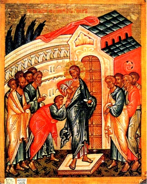 Toma, cu dreapta sa cea iubitoare de incredintare, A cercetat coasta cea de viata datatoare, Hristoase Dumnezeule; Caci usile fiind incuiate cand ai intrat, Impreuna cu ceilalti apostoli a strigat: "Tu esti Domnul si Dumnezeul nostru."
